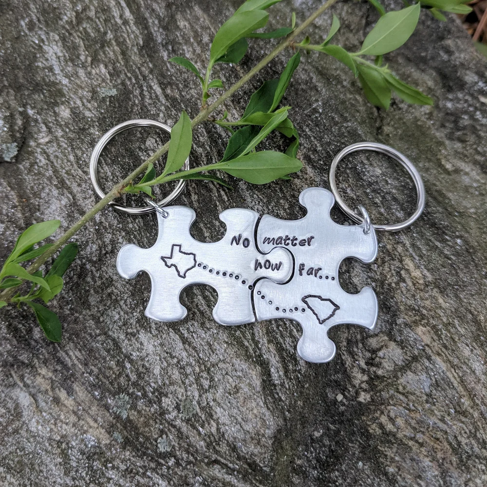Customized puzzle piece key chain personalized with names best friends / college moving/family/ sorority sisters key chain one27designs 5 out of 5 stars (9,090) $ 8.00. Personalized key chains, custom keychains, photo keychains. Personalized puzzle piece key chain with card 1 piece(s) #13807940 $ 12.77 was $ 15.69. My sweetheart personalized heart keychain. 0 reviews write a review | 1 question. Get it as soon as thu, jul 15. Aluminum puzzle keychains for couples with custom names. His brat her brat couples keychains, puzzle keychain set for couples. Each puzzle piece is about 1 x 1 1/2 inches. Valentines, birthday, wedding, for him, for her, couples gift. These keychains are sold as individuals, so that you can order odd numbers of them if you'd like. Can be personalized with dates, names/words, initials or coordinates. His dork her nerd puzzle piece key chain set hand stamped personalized his and hers set couples gift anniversary gift $15.90.